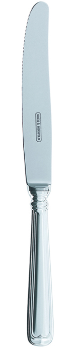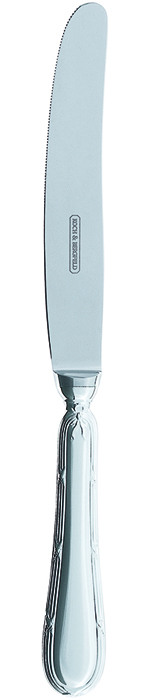 ![]() | Kreuzband Eine neue Zeit bedurfte einer neuen Formensprache: Nach französischer Revolution und napoleonischen Kriegen, mit dem Aufkommen der Nationalstaaten in Europa, entwickelten Architekten und Künstler für die neuen Mächtigen einen bürgerlich geprägten und zugleich repräsentativen Stil: Wir sprechen vom „Empire“. Und so kann man bei diesem Modell vom ersten „bürgerlichen“ Besteck sprechen. Für den historisch gebildeten oder bewußten Menschen ist es auf jeden Fall ein Bekenntnis. Das bekannte Stilelement - die Schleife, das „überkreuzte“ Band der Revolutionäre von einst - ist auch Namensgeber für das historische Modell „Kreuzband“ von Koch & Bergfeld. Im Jahr 1893 wurde es entworfen vom Leiter des hauseigenen Entwurfbüros, Heinrich von der Cammer. Das vielleicht auf den ersten Blick schlichte Modell stellt höchste Ansprüche an die Handwerker, denn die kleinen Schleifen müssen sorgfältig und klar erkennbar aus dem Silber herausgearbeitet sein – das ist unser Anspruch. | ![]() |