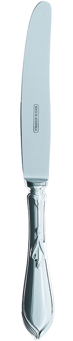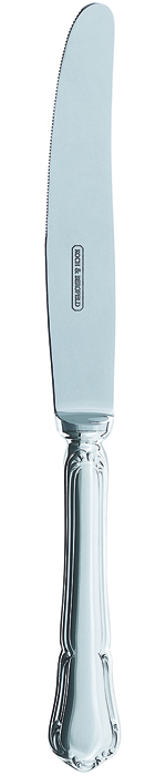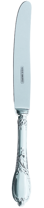 ![]() | Rokoko Es waren die besonders kreativen Jahre von Koch & Bergfeld: Kurz vor der Jahrhundertwende auf 1900 schuf das firmeneigene Entwurfsbüro unter seinem Leiter Heinrich von der Cammer viele Klassiker, die bis heute gefertigt werden. Dazu gehört eindeutig das Modell „Rokoko“ aus dem „Spitzenjahrgang“ 1893, in dem auch „Kreuzband“ und „Ballade“ ihren Erfolgsweg beschritten. Die kleine Rokoko-typischen Muschel („Rocaille“) in Verbindung mit einem luftigen, floralen Dekor, das um stiltypische große spiegelnde Flächen gewunden wurde, erfordert höchstes handwerkliches Können und große Erfahrung des Silberschmieds. Das Besteck strahlt die Größe einer Zeit aus, die sich unter Friedrich dem Großen den schönen Künsten aber erstmals auch einer liberalen Aufklärung und der Wissenschaft zugewandt hatte. Denken Sie nur an „Sans-Soucis“... Nun, Sie können dieses Besteck aber auch einfach nur schön finden – und vor allem auch mit ihm essen! | ![]() |